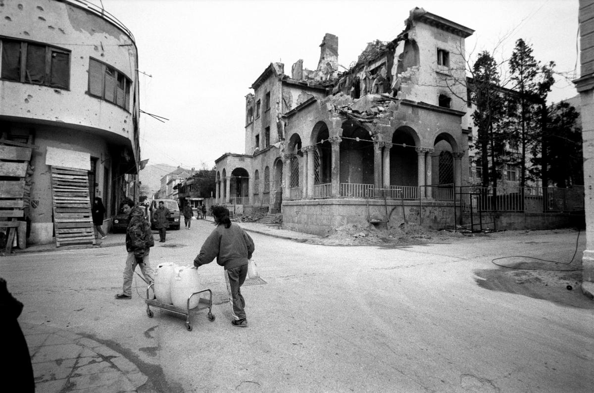 East Mostar's residents cart water home through the enclave's embattled streets.