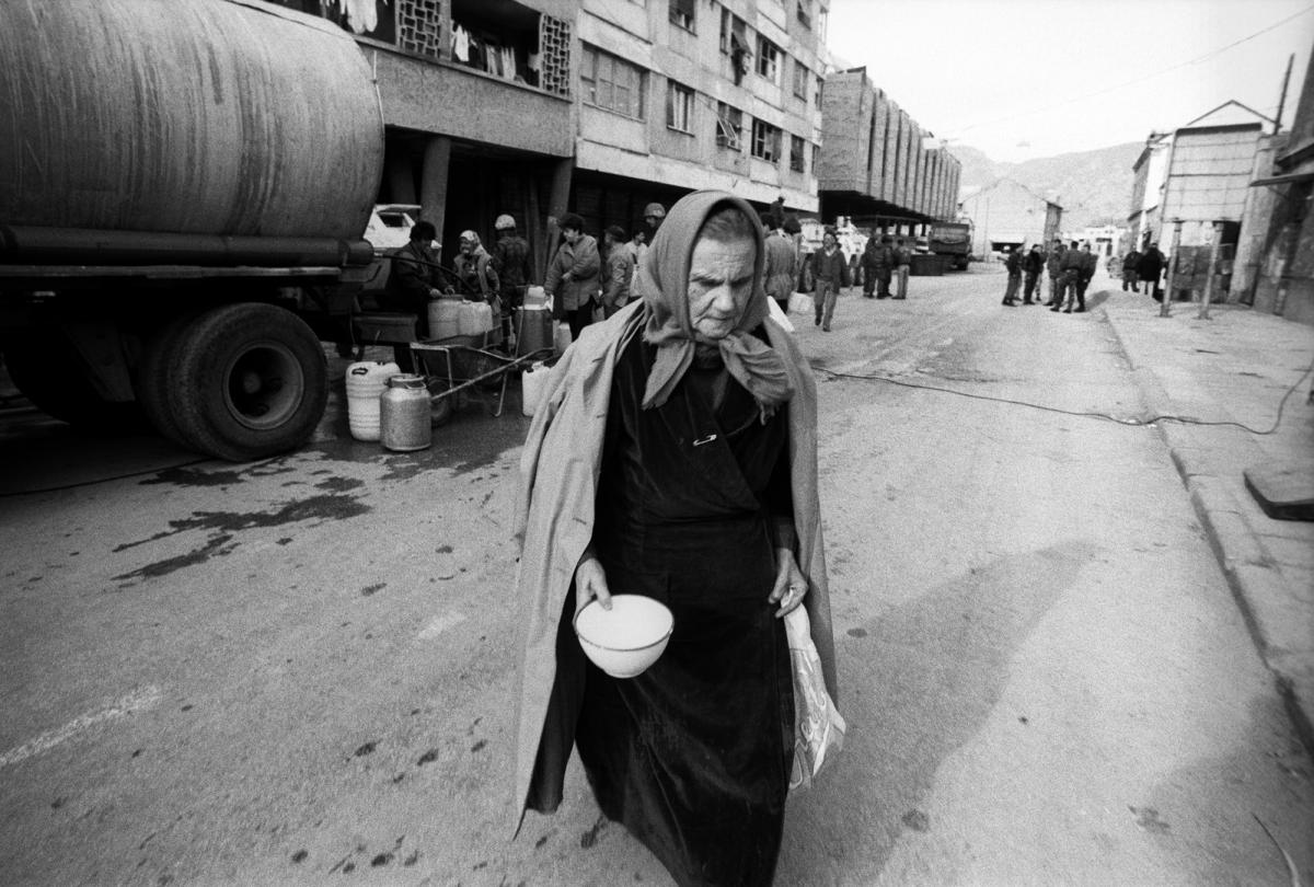Residents of the enclave collect water almost every day from a delivery truck.