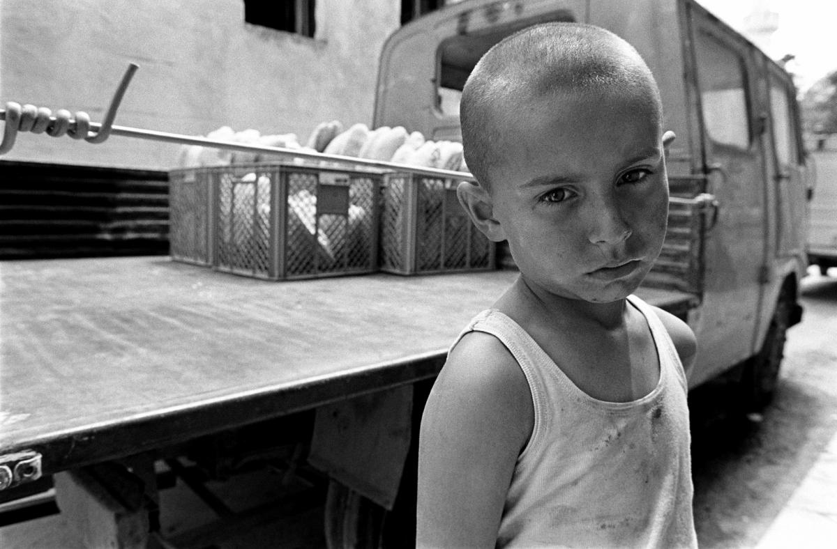 Nakon prekida vatre, dječak lunja oko pekarnice. Čak i nakon prekida vatre glavna opskrba hranom enklave odvijala se putem međunarodne pomoći dostavljane od strane UN.